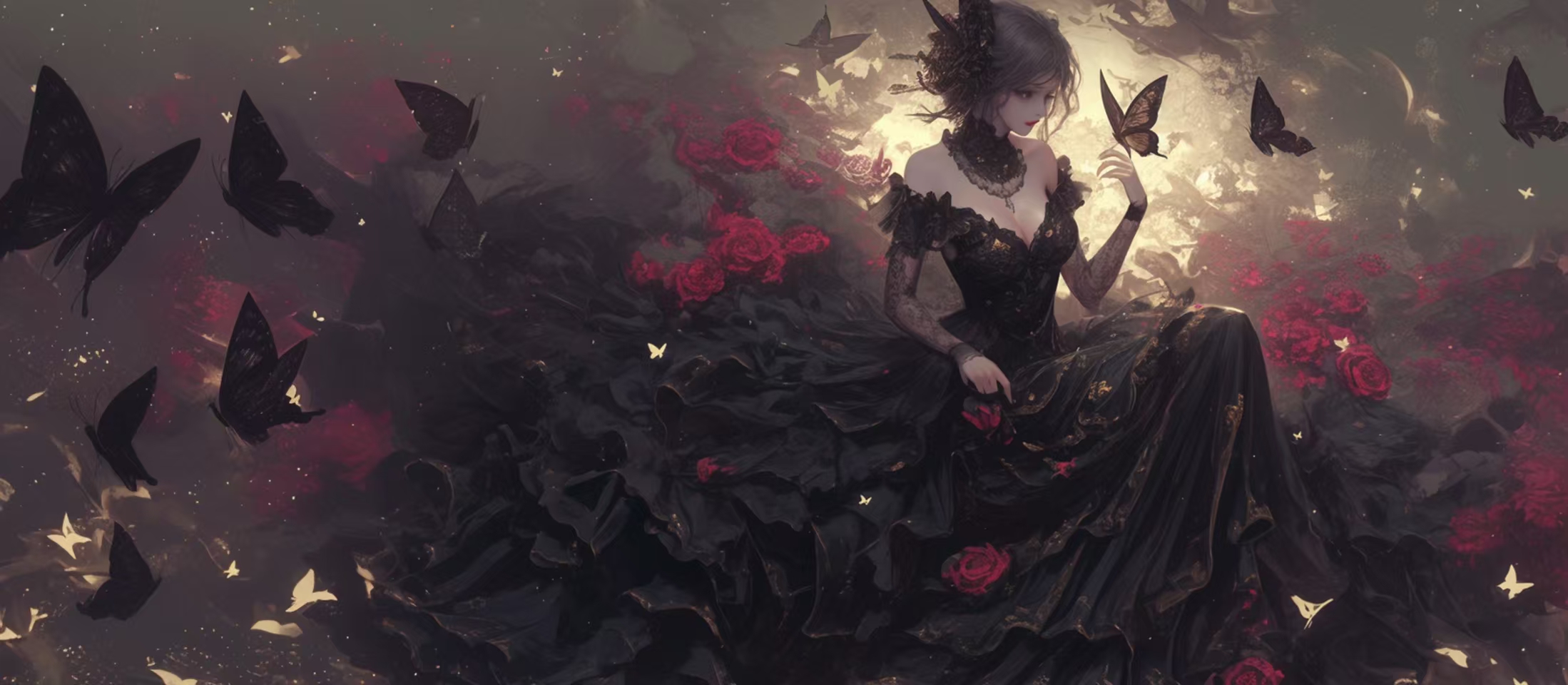 黑色蝴蝶与红玫瑰