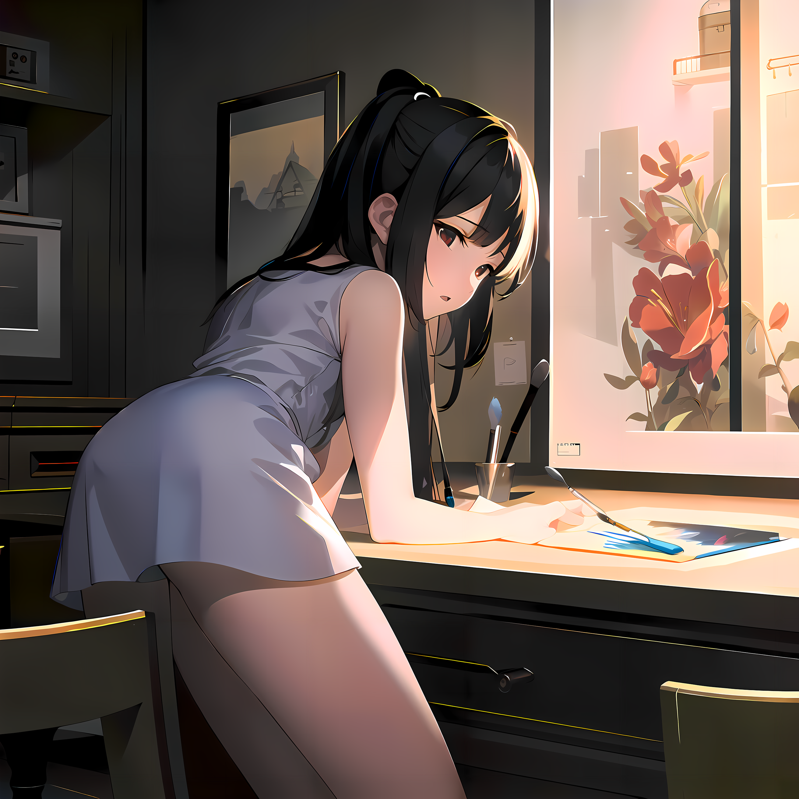 动漫女孩画画 - 巨应壁纸3